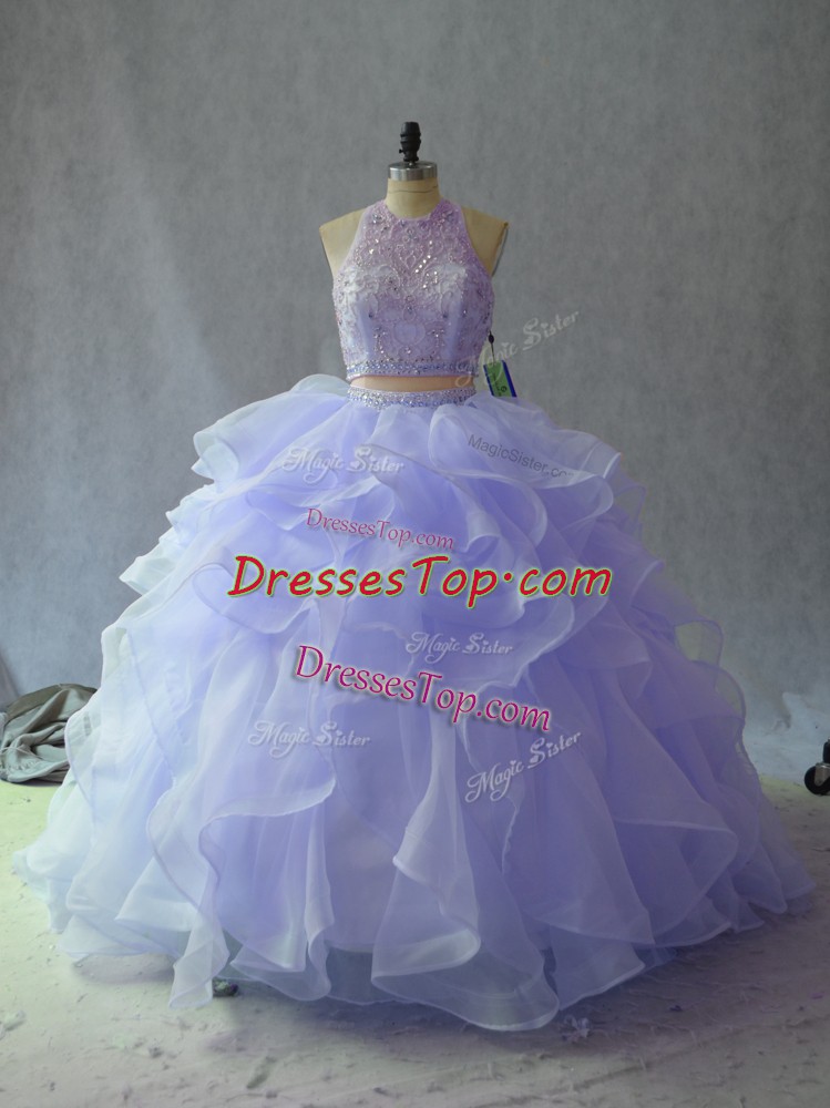 Organza Sleeveless Floor Length Quinceanera Dress and Beading and Ruffles