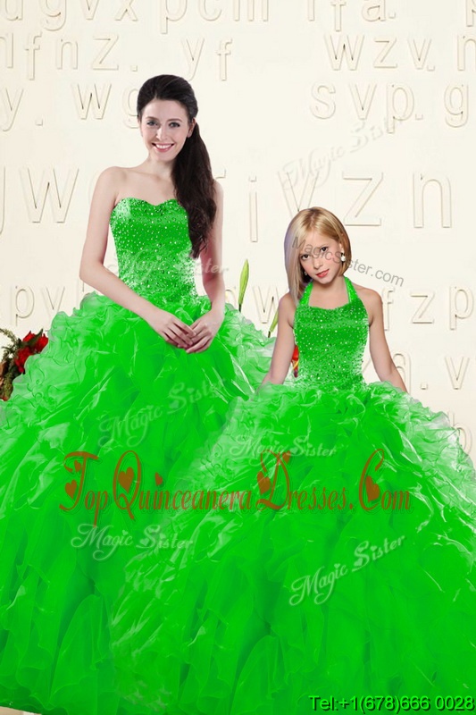 Organza Sleeveless Floor Length Quinceanera Dresses and Beading and Ruffles