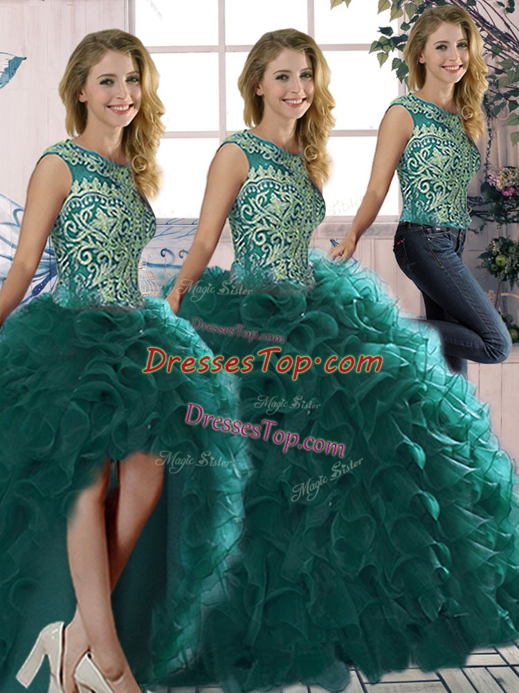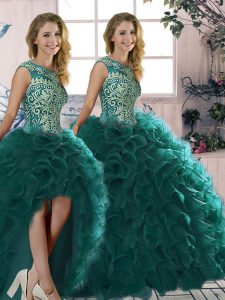 Organza Sleeveless Floor Length Quinceanera Dresses and Beading and Ruffles