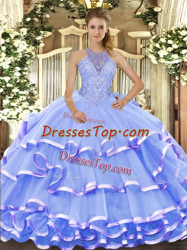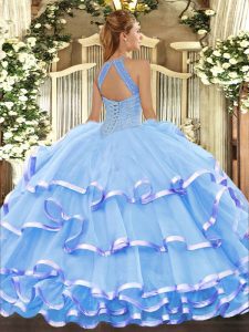 Organza Sleeveless Floor Length Quinceanera Gowns and Beading and Ruffled Layers