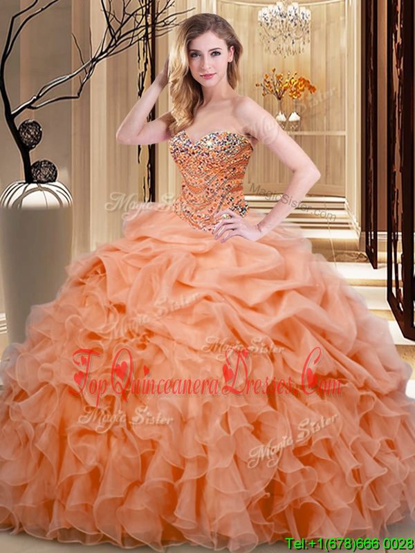 Organza Sleeveless Floor Length Quinceanera Gowns and Beading and Ruffles and Pick Ups