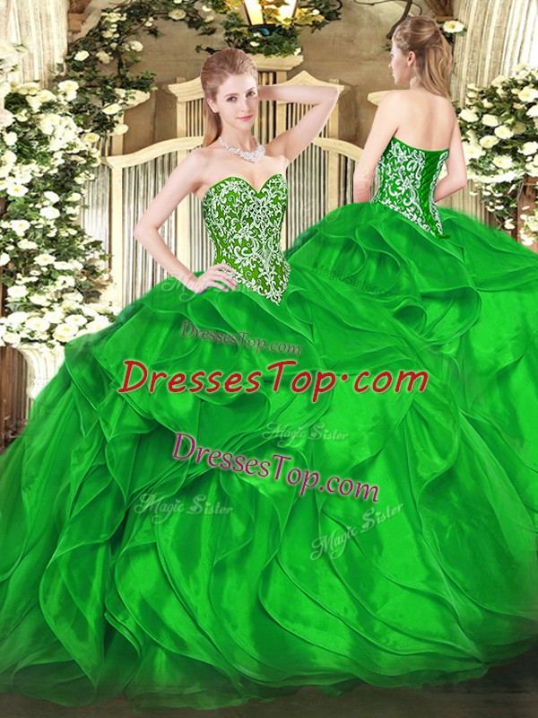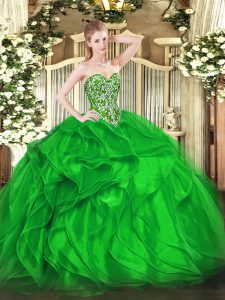 Organza Sleeveless Floor Length Sweet 16 Dress and Beading and Ruffles