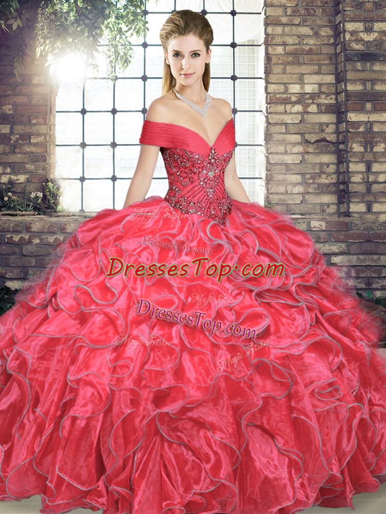 Organza Sleeveless Floor Length Sweet 16 Dresses and Beading and Ruffles