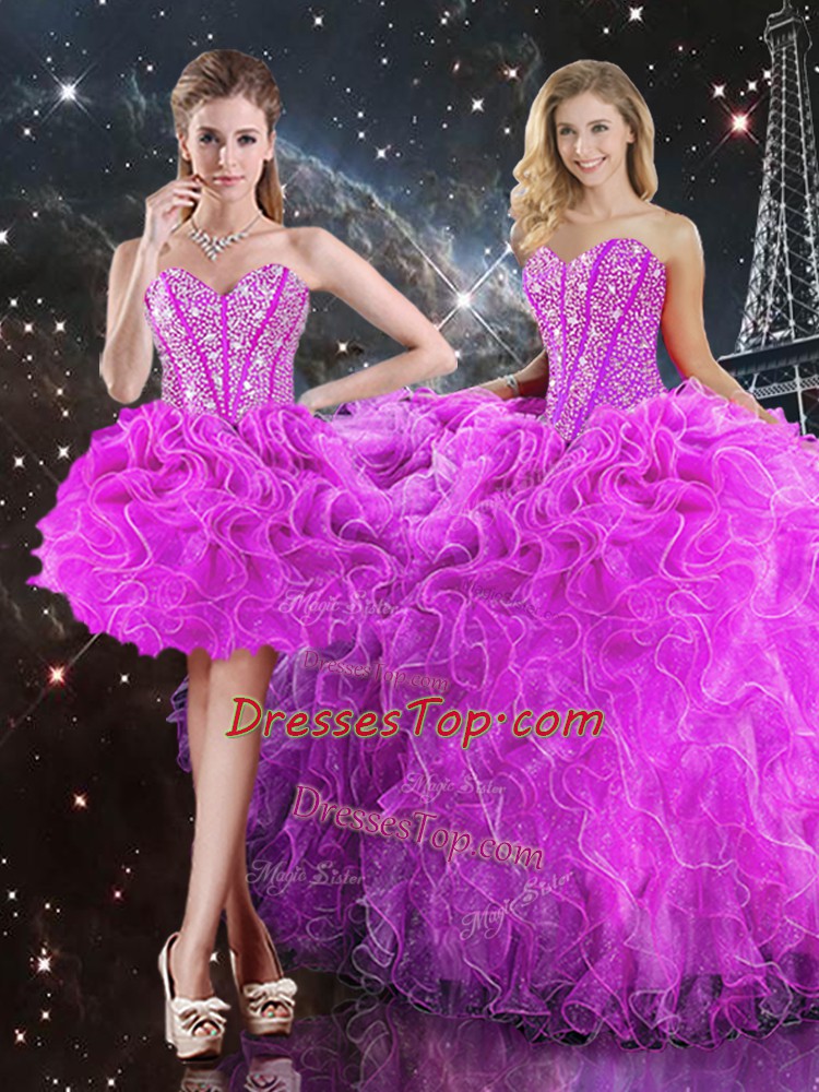 Organza Sleeveless Floor Length Vestidos de Quinceanera and Beading and Ruffles