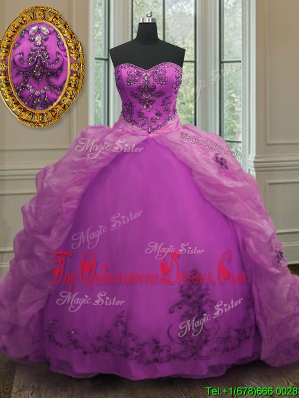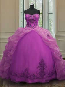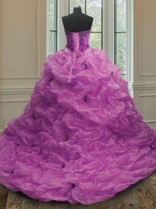 Organza Sleeveless With Train Sweet 16 Quinceanera Dress Sweep Train and Beading and Ruffled Layers