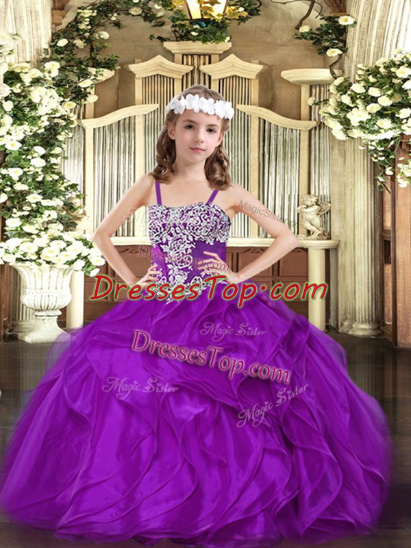 Organza Straps Sleeveless Lace Up Appliques and Ruffles Child Pageant Dress in Purple