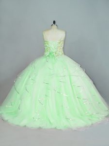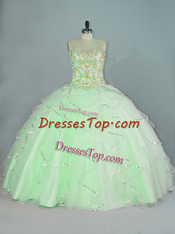 Organza Straps Sleeveless Lace Up Beading and Ruffles 15 Quinceanera Dress in Apple Green