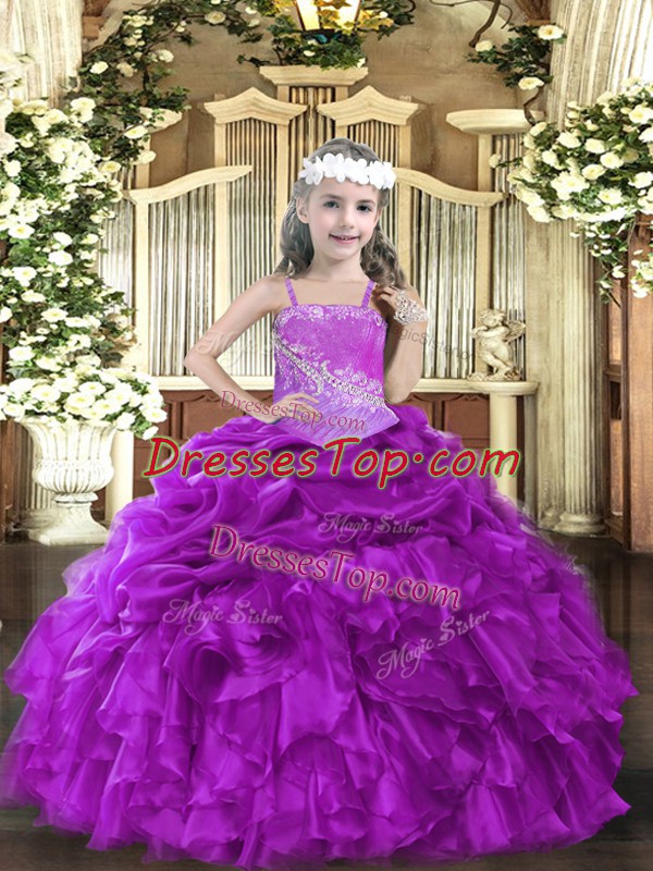 Organza Straps Sleeveless Lace Up Beading and Ruffles Little Girls Pageant Dress in Purple