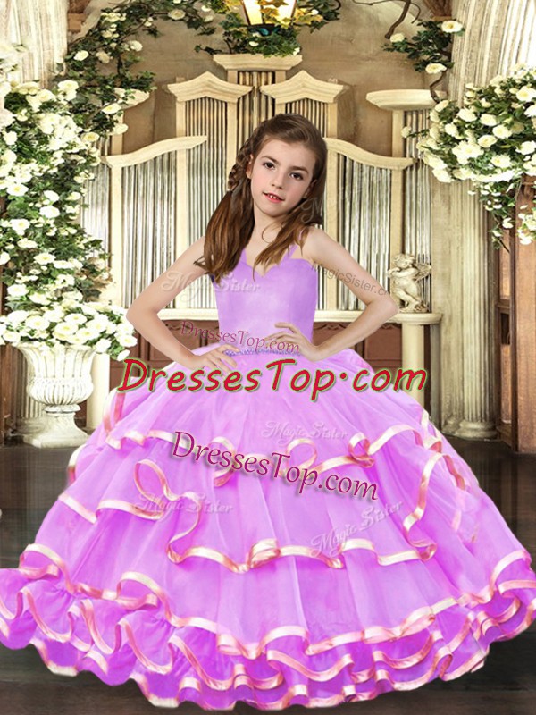 Organza Straps Sleeveless Lace Up Ruffled Layers Pageant Gowns For Girls in Lavender