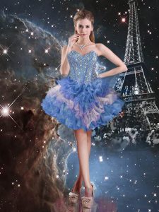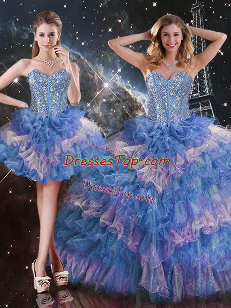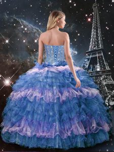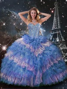 Organza Sweetheart Sleeveless Lace Up Beading and Ruffled Layers and Sequins Quinceanera Dresses in Multi-color