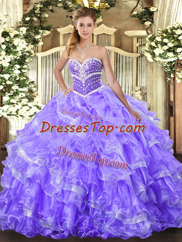 Organza Sweetheart Sleeveless Lace Up Beading and Ruffled Layers Quinceanera Gowns in Lavender