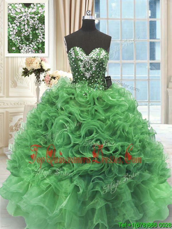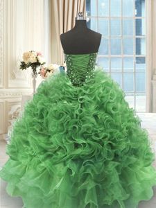 Organza Sweetheart Sleeveless Lace Up Beading and Ruffles 15th Birthday Dress in Yellow Green