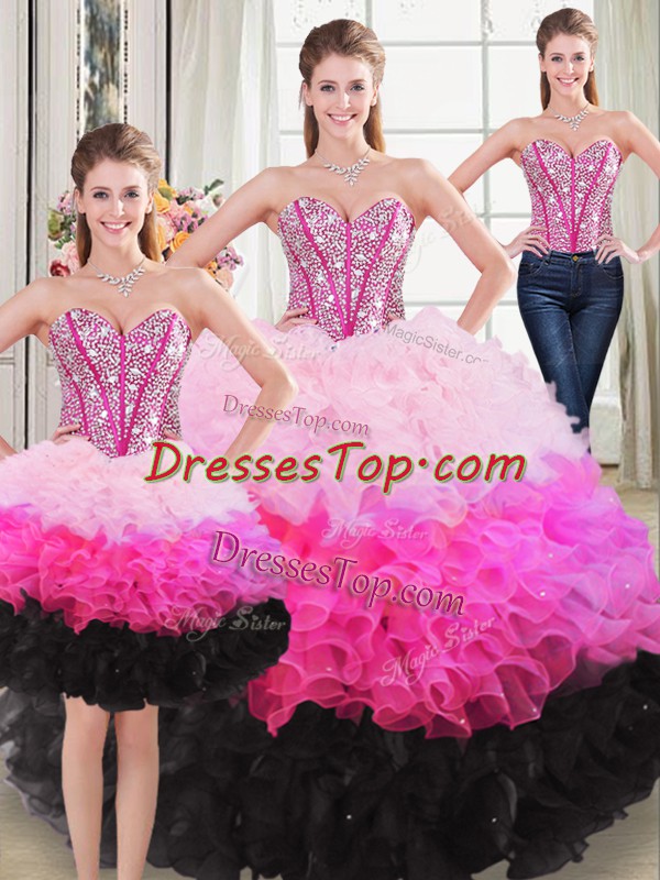 Organza Sweetheart Sleeveless Lace Up Beading and Ruffles Quinceanera Gown in Multi-color
