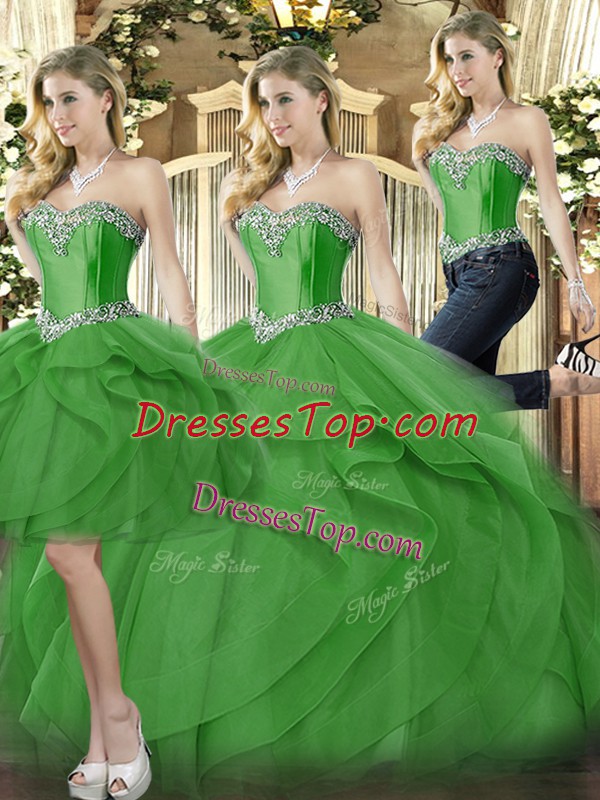 Organza Sweetheart Sleeveless Lace Up Beading and Ruffles Quinceanera Gowns in Green
