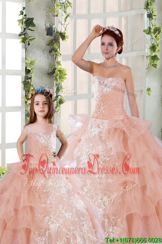 Peach Ball Gowns Strapless Sleeveless Organza Floor Length Lace Up Beading and Ruffled Layers and Ruching Vestidos de Quinceanera