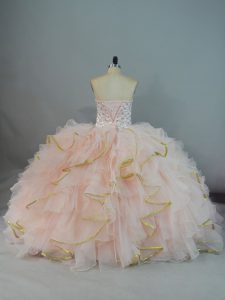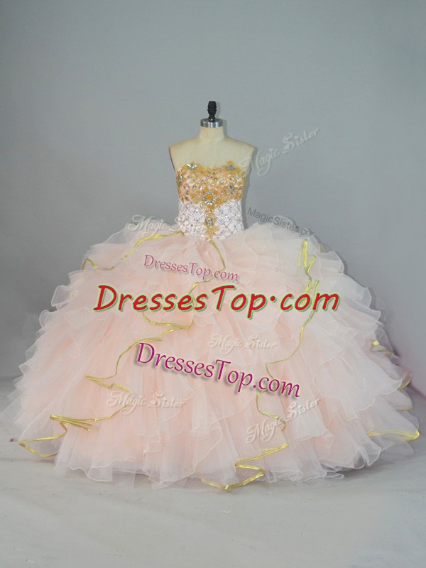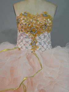 Peach Lace Up Sweetheart Beading and Ruffles 15 Quinceanera Dress Organza Sleeveless