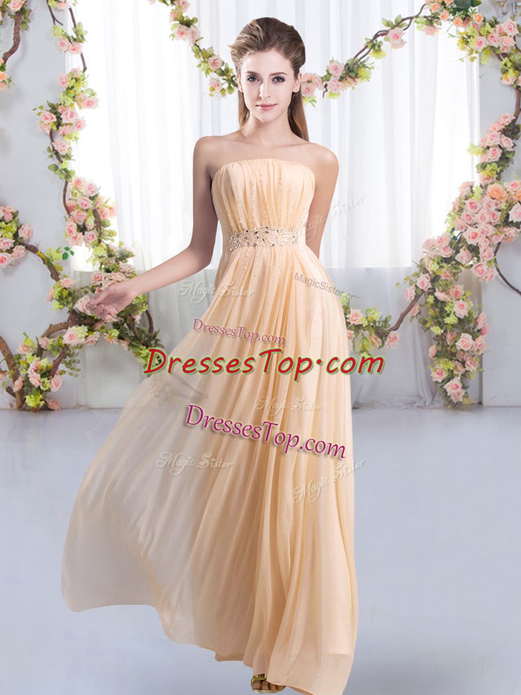 Peach Quinceanera Court of Honor Dress Wedding Party with Beading Strapless Sleeveless Sweep Train Lace Up