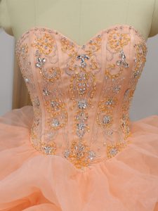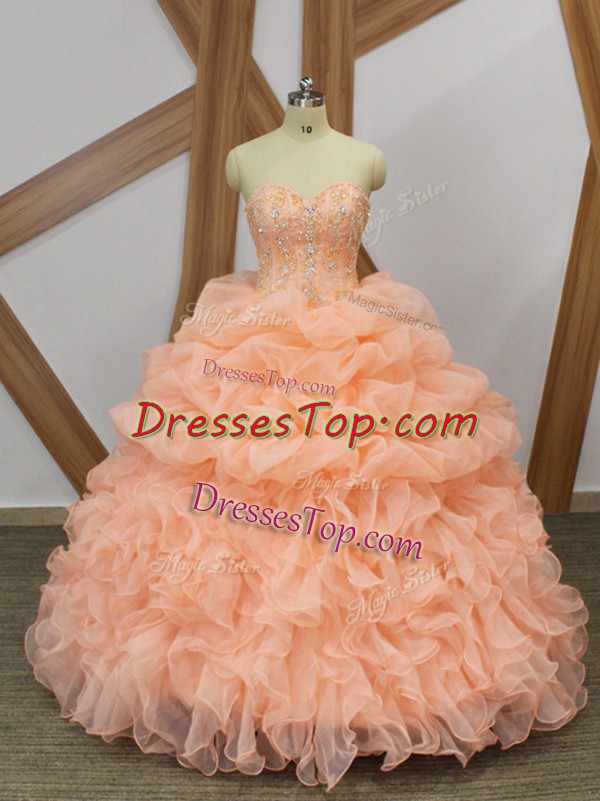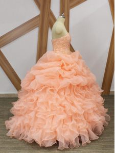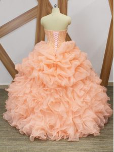 Peach Sleeveless Beading and Ruffles and Pick Ups Lace Up Sweet 16 Dress
