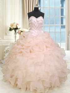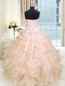 Peach Sleeveless Floor Length Beading and Ruffles Lace Up Quinceanera Gown