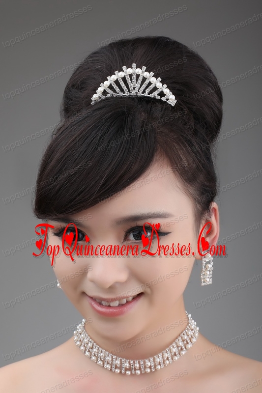 Pearl Wedding Jewelry Set Including Necklace Earrings And Crown