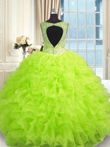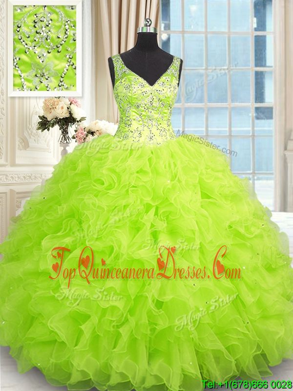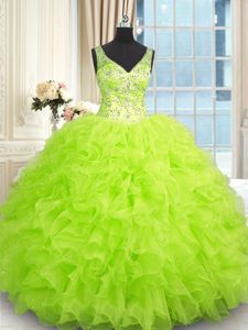 Perfect 15th Birthday Dress Military Ball and Sweet 16 and Quinceanera and For with Beading and Ruffles V-neck Sleeveless Zipper