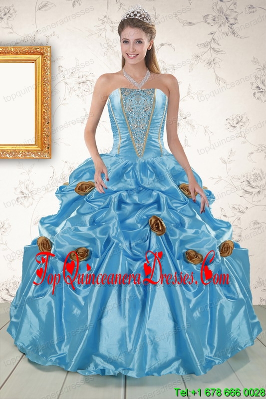 Perfect Aqua Blue Quinceanera Dresses with Beading and Flowers