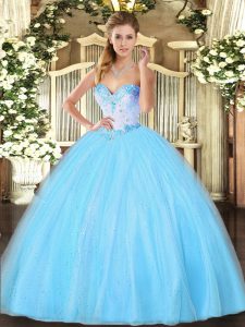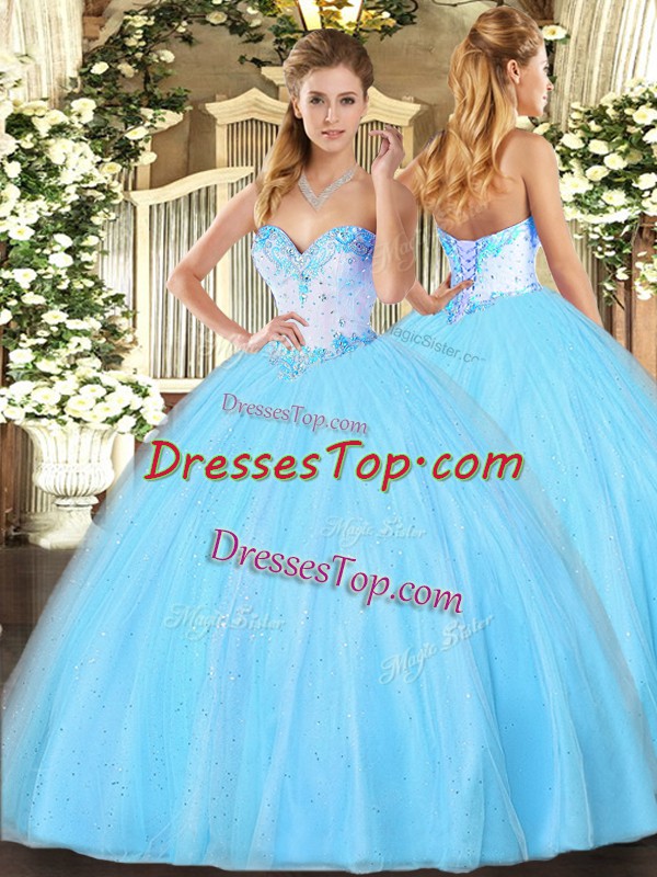 Perfect Aqua Blue Sleeveless Tulle Lace Up Sweet 16 Quinceanera Dress for Military Ball and Sweet 16 and Quinceanera
