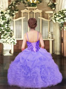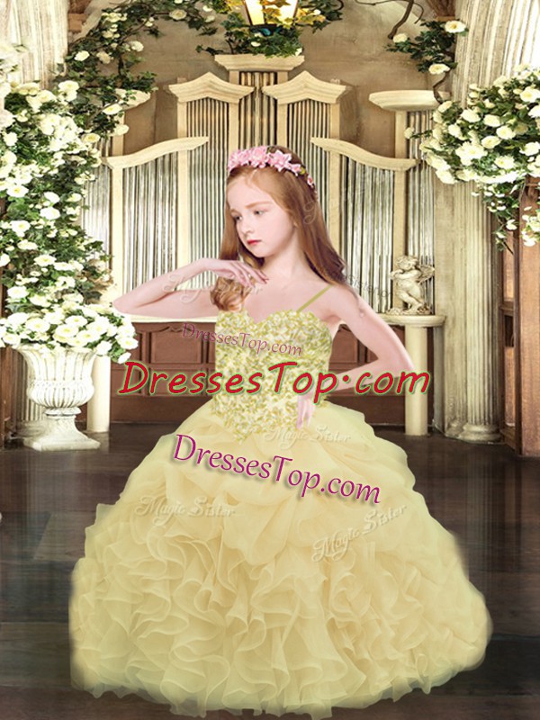 Perfect Asymmetrical Champagne Little Girls Pageant Gowns Organza Sleeveless Appliques and Ruffles and Pick Ups