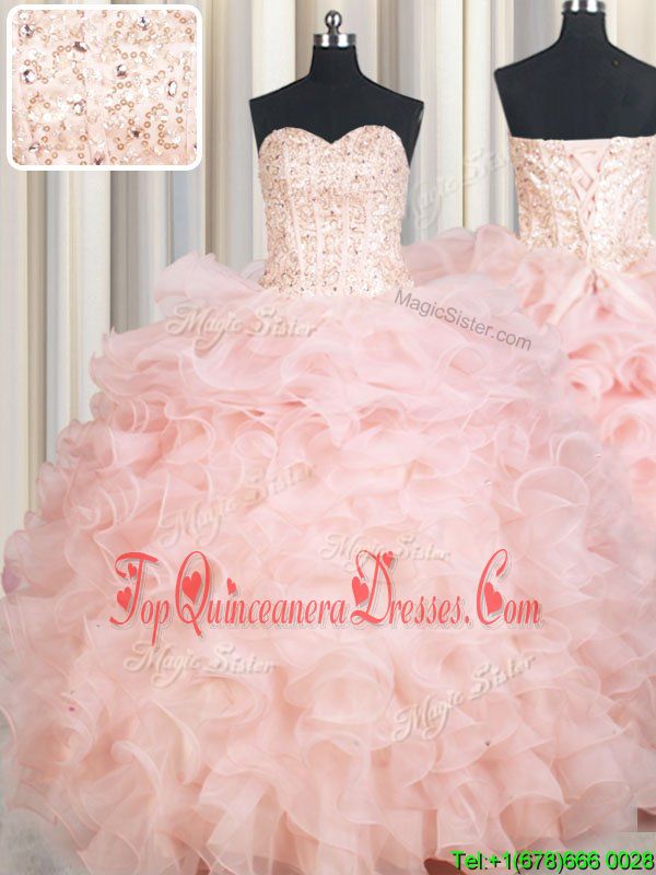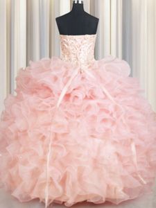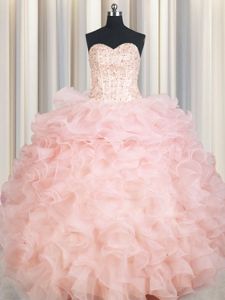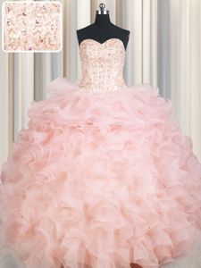 Perfect Baby Pink Quinceanera Gown Military Ball and Sweet 16 and Quinceanera and For with Beading and Ruffles Sweetheart Sleeveless Lace Up