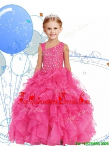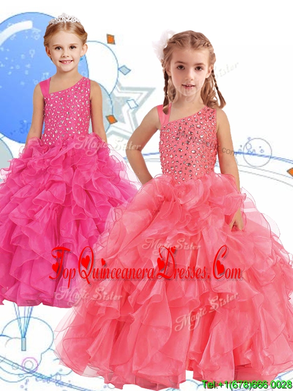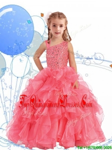Perfect Beaded and Ruffled Asymmetrical Neckline Mini Quinceanera Dress in Watermelon Red