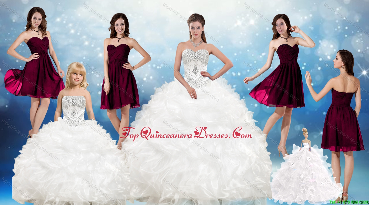 Perfect Beading White Sweetheart Quinceanera Gown and Sweetheart Short Dama Dresses and Beading and Ruffles Flower Girl Dress
