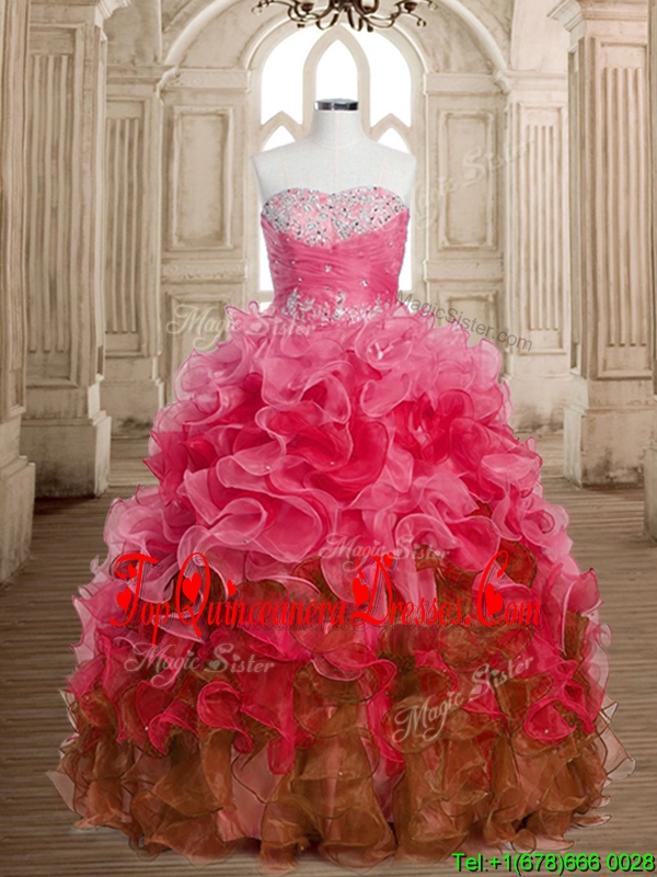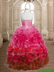 Perfect Big Puffy Beaded and Ruffles Quinceanera Dress in Multi Color