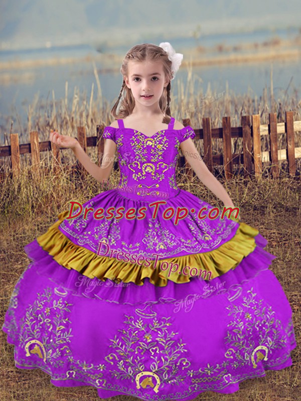 Perfect Floor Length Ball Gowns Sleeveless Purple Pageant Dress for Teens Lace Up