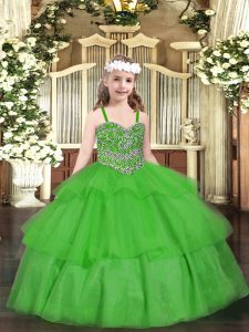 Perfect Floor Length Green Glitz Pageant Dress Straps Sleeveless Lace Up