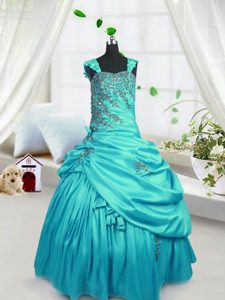 Perfect Floor Length Lace Up Girls Pageant Dresses Turquoise and In for Party and Wedding Party with Beading and Pick Ups
