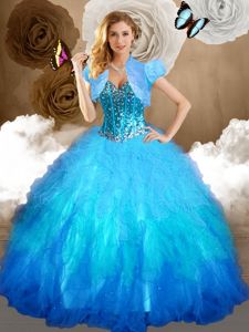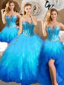 Perfect Four Piece Sleeveless Tulle Floor Length Lace Up Sweet 16 Dresses in Multi-color for with Beading and Ruffles and Sequins