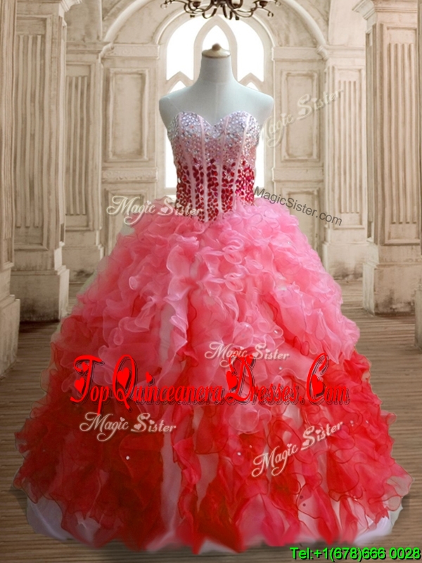 Perfect Gradient Color Organza Quinceanera Dress with Beading and Ruffles