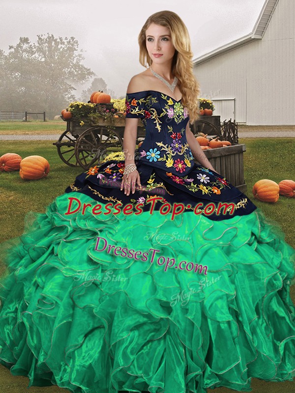 Perfect Green Sleeveless Embroidery and Ruffles Floor Length Quinceanera Gowns