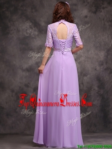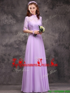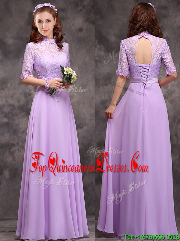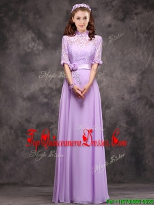 Perfect High Neck Handcrafted Flowers Quinceanera Dama Dress with Half Sleeves