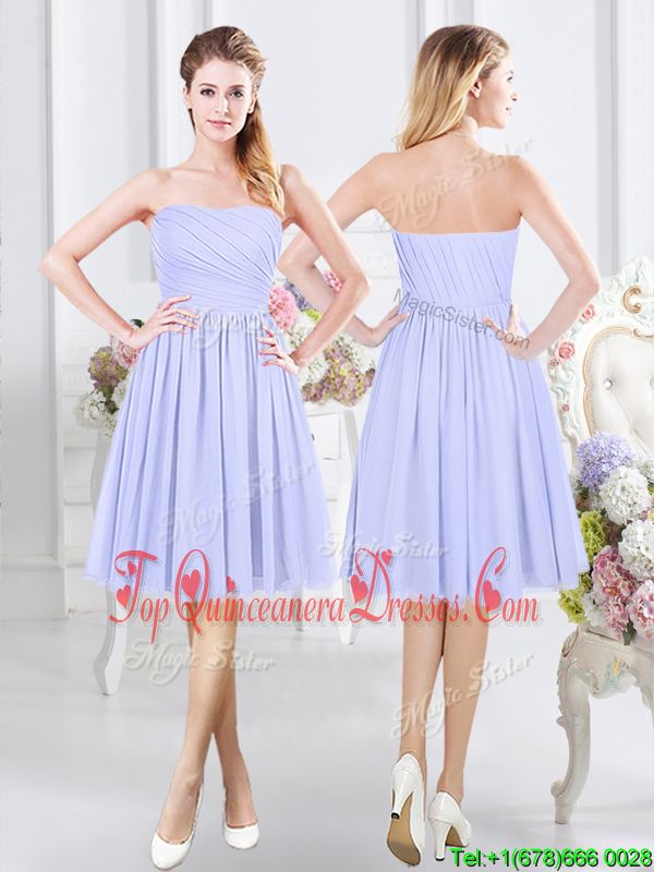 Perfect Lavender Chiffon Side Zipper Strapless Sleeveless Knee Length Damas Dress Ruching