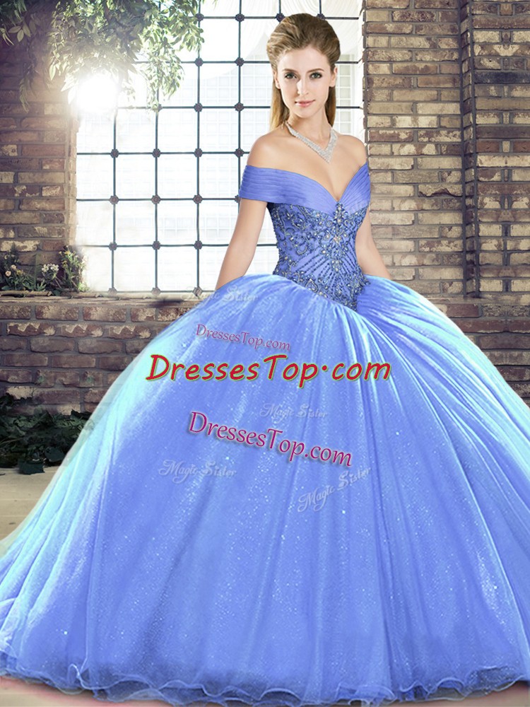 Perfect Lavender Vestidos de Quinceanera Organza Brush Train Sleeveless Beading