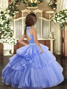 Perfect Lilac Ball Gowns High-neck Sleeveless Tulle Floor Length Backless Beading and Appliques Little Girls Pageant Dress Wholesale