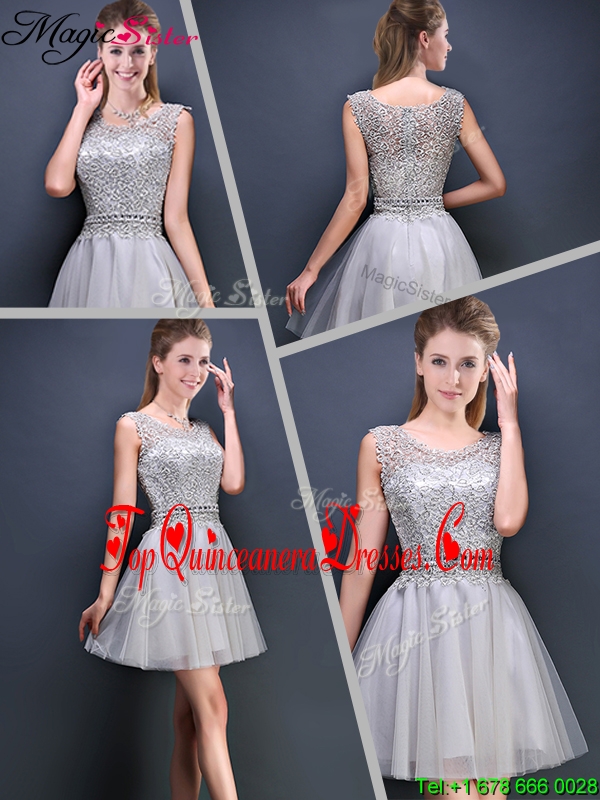Perfect Mini Length Scoop 2016 Dama Dresses with Appliques
