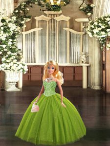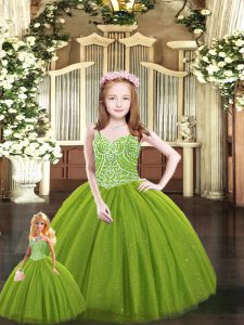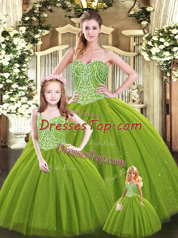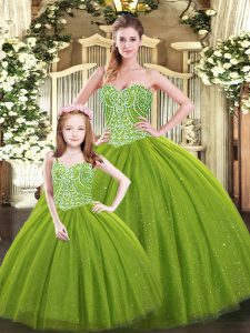 Perfect Olive Green Ball Gowns Beading Quinceanera Gowns Lace Up Tulle Sleeveless Floor Length