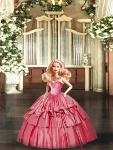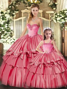 Perfect Organza Sweetheart Sleeveless Lace Up Ruffled Layers Sweet 16 Dress in Watermelon Red