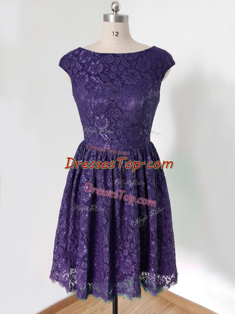 Perfect Purple Cap Sleeves Knee Length Lace Lace Up Damas Dress