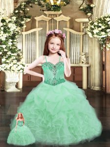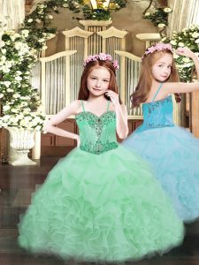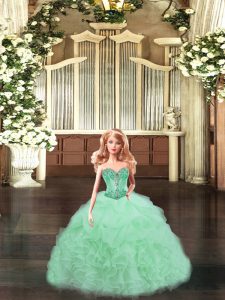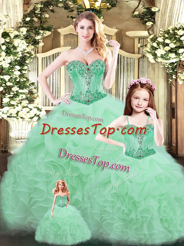 Perfect Sleeveless Beading and Ruffles Lace Up Ball Gown Prom Dress