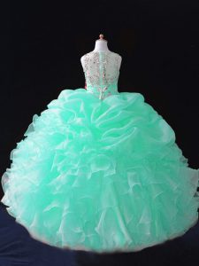Perfect Sleeveless Floor Length Beading and Ruffles and Pick Ups Zipper Child Pageant Dress with Apple Green