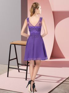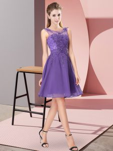 Perfect Sleeveless Knee Length Appliques Zipper Dama Dress for Quinceanera with Lavender