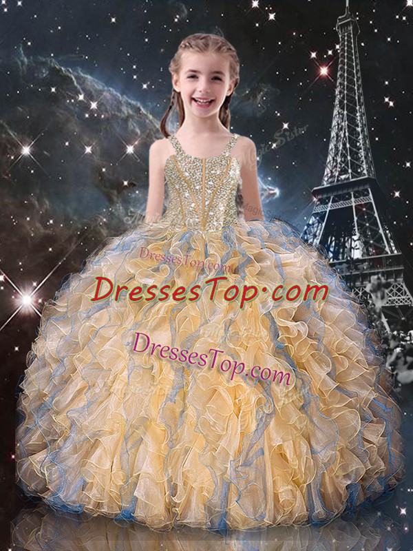 Perfect Sleeveless Lace Up Floor Length Beading and Ruffles Pageant Dress